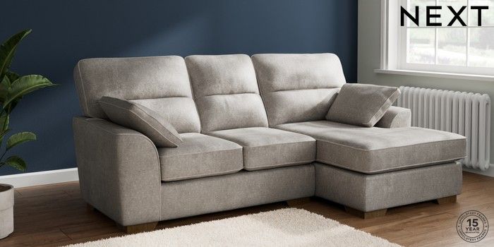 7.2.10 Buy Stamford Highback Small Sofa Chaise - Right Hand Plush Chenille Light Grey Large Square Angle - Mid from the Next UK online shop Click here to use our accessible website