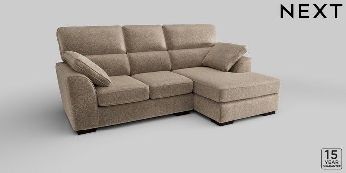 6.12.1 Buy Stamford Highback Small Sofa Chaise - Right Hand Plush Chenille Mid Natural Large Square Angle - Dark from the Next UK online shop Click here to use our accessible website