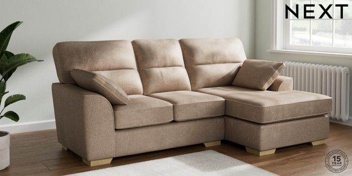 6.12.1 Buy Stamford Highback Small Sofa Chaise - Right Hand Plush Chenille Mid Natural Large Square Angle - Light from the Next UK online shop Click here to use our accessible website