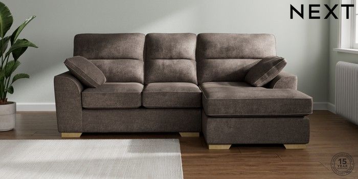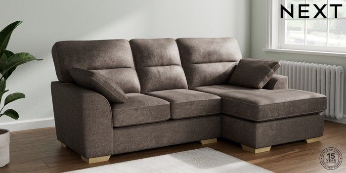 7.2.10 Buy Stamford Highback Small Sofa Chaise - Right Hand Plush Chenille Mink Brown Large Square Angle - Light from the Next UK online shop Click here to use our accessible website