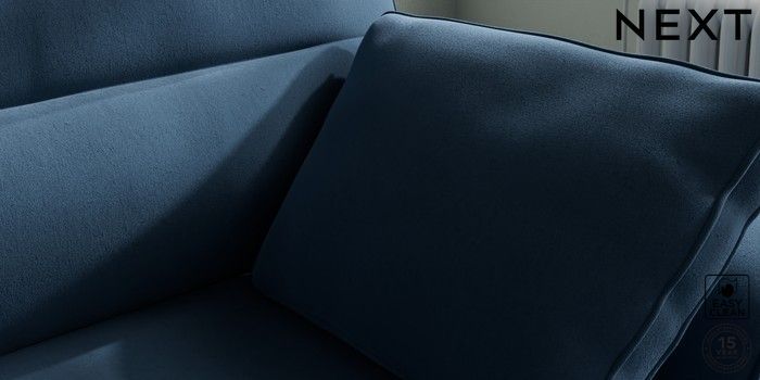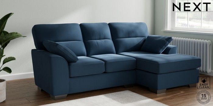 7.3.1 Buy Stamford Highback Small Sofa Chaise - Right Hand Plush Velvet Easy Clean Airforce Blue Large Square Angle - Gunmetal from the Next UK online shop Click here to use our accessible website