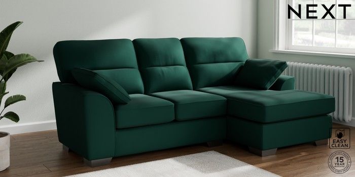 7.3.1 Buy Stamford Highback Small Sofa Chaise - Right Hand Plush Velvet Easy Clean Bottle Green Large Square Angle - Gunmetal from the Next UK online shop Click here to use our accessible website