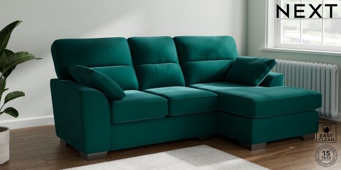 7.3.1 Buy Stamford Highback Small Sofa Chaise - Right Hand Plush Velvet Easy Clean Juniper Green Large Square Angle - Gunmetal from the Next UK online shop Click here to use our accessible website
