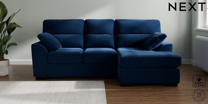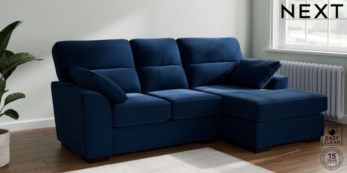 7.3.1 Buy Stamford Highback Small Sofa Chaise - Right Hand Plush Velvet Easy Clean Navy Blue Large Square Angle - Dark from the Next UK online shop Click here to use our accessible website