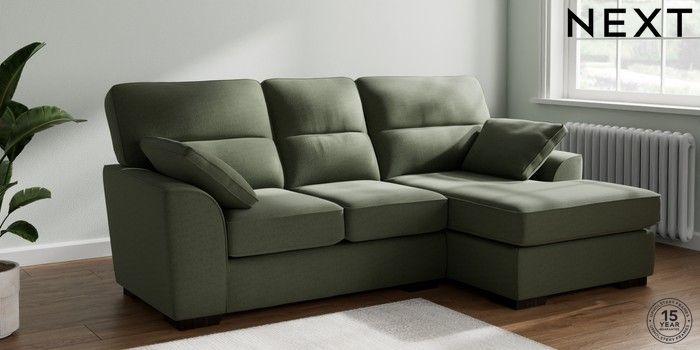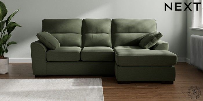 7.3.1 Buy Stamford Highback Small Sofa Chaise - Right Hand Relaxed Linen Look Dark Green Large Square Angle - Dark from the Next UK online shop Click here to use our accessible website