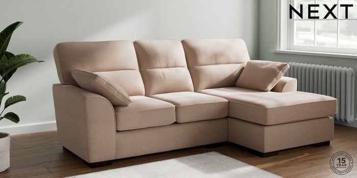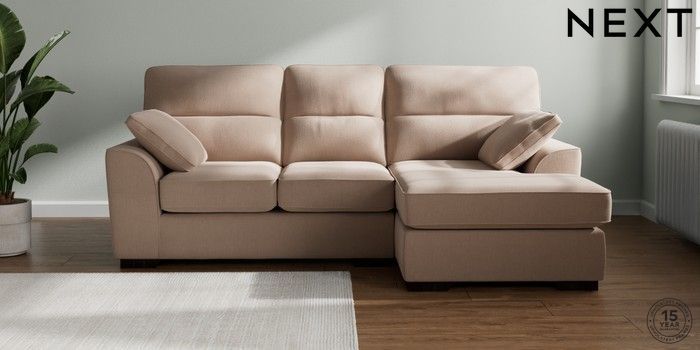 7.3.1 Buy Stamford Highback Small Sofa Chaise - Right Hand Relaxed Linen Look Mid Natural Large Square Angle - Dark from the Next UK online shop Click here to use our accessible website