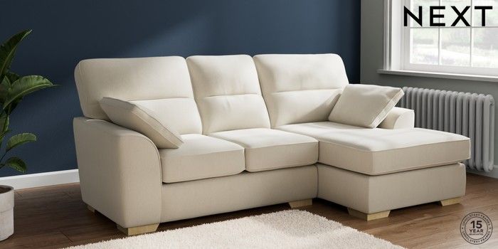 7.2.10 Buy Stamford Highback Small Sofa Chaise - Right Hand Relaxed Linen Look Oyster Large Square Angle - Light from the Next UK online shop Click here to use our accessible website