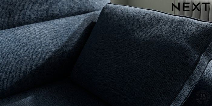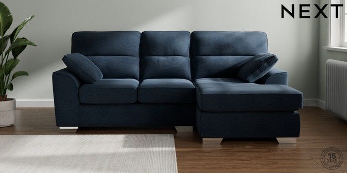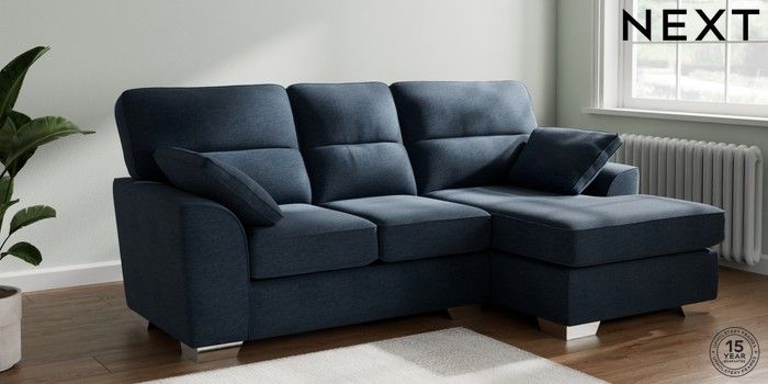 7.2.6 Buy Stamford Highback Small Sofa Chaise - Right Hand Ripple Chenille Dark Blue Large Square Angle - Chrome Metal from the Next UK online shop Click here to use our accessible website