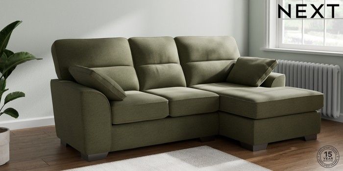 7.3.1 Buy Stamford Highback Small Sofa Chaise - Right Hand Ripple Chenille Mid Moss Green Large Square Angle - Gunmetal from the Next UK online shop Click here to use our accessible website