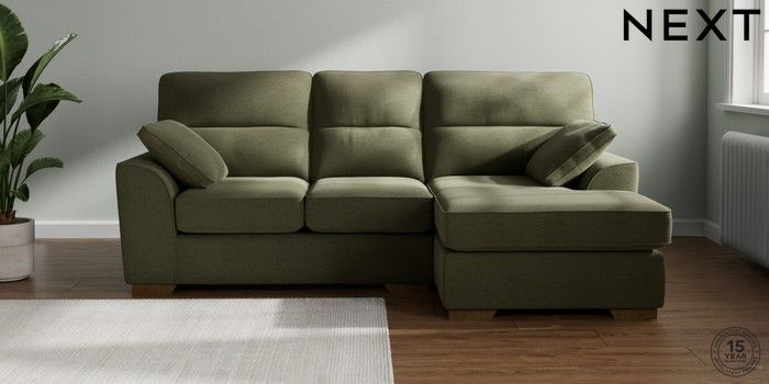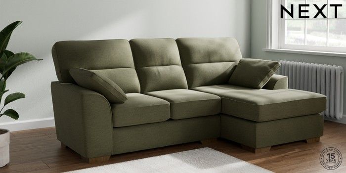 7.2.10 Buy Stamford Highback Small Sofa Chaise - Right Hand Ripple Chenille Mid Moss Green Large Square Angle - Mid from the Next UK online shop Click here to use our accessible website