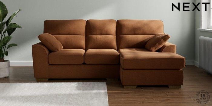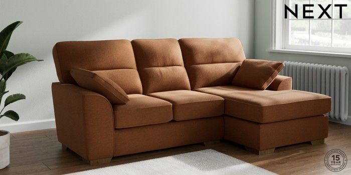 7.2.10 Buy Stamford Highback Small Sofa Chaise - Right Hand Ripple Chenille Mid Rust Brown Large Square Angle - Mid from the Next UK online shop Click here to use our accessible website