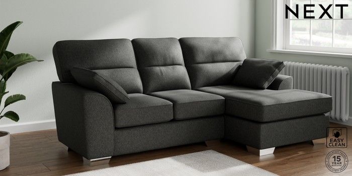 7.2.10 Buy Stamford Highback Small Sofa Chaise - Right Hand Tweedy Blend Easy Clean Charcoal Grey Large Square Angle - Chrome Metal from the Next UK online shop Click here to use our accessible website