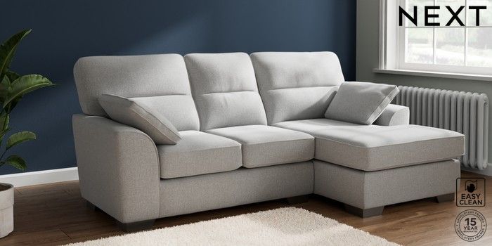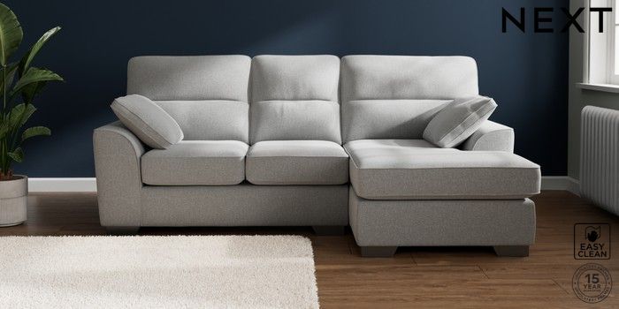 7.2.10 Buy Stamford Highback Small Sofa Chaise - Right Hand Tweedy Blend Easy Clean Light Silver Grey Large Square Angle - Gunmetal from the Next UK online shop Click here to use our accessible website