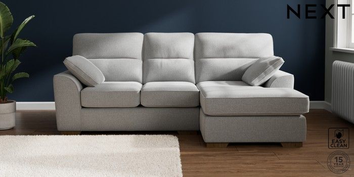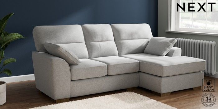 7.2.10 Buy Stamford Highback Small Sofa Chaise - Right Hand Tweedy Blend Easy Clean Light Silver Grey Large Square Angle - Mid from the Next UK online shop Click here to use our accessible website