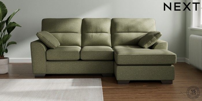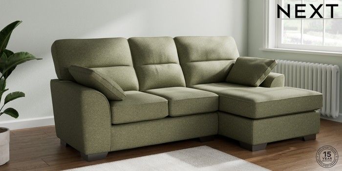 7.3.1 Buy Stamford Highback Small Sofa Chaise - Right Hand Tweedy Chenille Mid Moss Green Large Square Angle - Gunmetal from the Next UK online shop Click here to use our accessible website