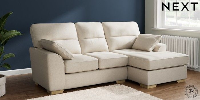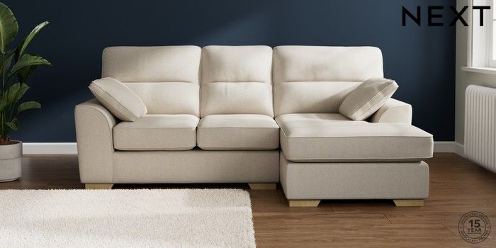 7.2.10 Buy Stamford Highback Small Sofa Chaise - Right Hand Tweedy Chenille Oyster Large Square Angle - Light from the Next UK online shop Click here to use our accessible website