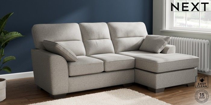 6.12.1 Buy Stamford Highback Small Sofa Chaise - Right Hand Woven Chenille Easy Clean Light Grey Large Square Angle - Gunmetal from the Next UK online shop Click here to use our accessible website