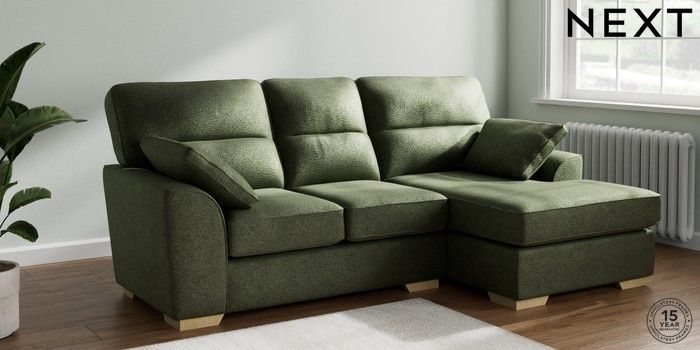 6.12.1 Buy Stamford Highback Small Sofa Chaise - Right Hand Boucle Chenille Dark Moss Green Large Square Angle - Light from the Next UK online shop Click here to use our accessible website