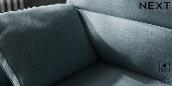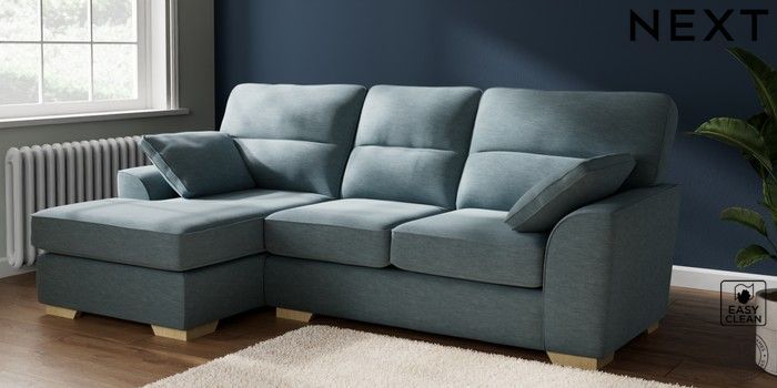 7.2.10 Buy Stamford Highback Medium Sofa Chaise - Left Hand Fine Chenille Easy Clean Mid Blue Large Square Angle - Light from the Next UK online shop Click here to use our accessible website