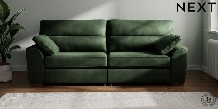 7.2.6 Buy Stamford Highback 4 Seater Sofa Luxe Chenille Dark Green Large Square Angle - Mid from the Next UK online shop Click here to use our accessible website