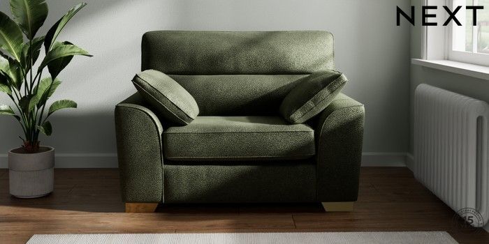 7.2.10 Buy Stamford Highback Snuggle Boucle Chenille Dark Moss Green Large Square Angle - Brushed Brass from the Next UK online shop Click here to use our accessible website