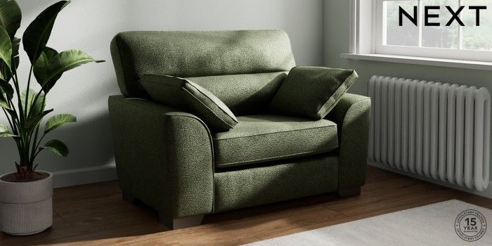 7.2.10 Buy Stamford Highback Snuggle Boucle Chenille Dark Moss Green Large Square Angle - Gunmetal from the Next UK online shop Click here to use our accessible website