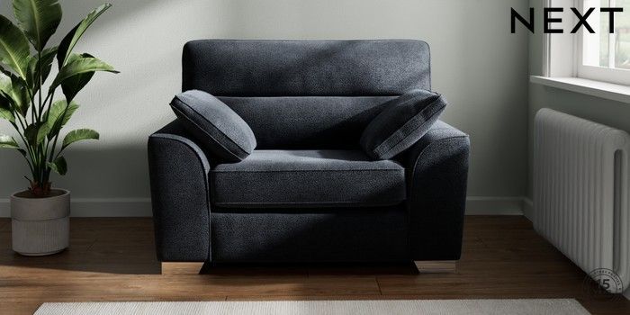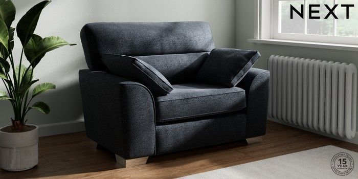 7.2.10 Buy Stamford Highback Snuggle Boucle Chenille Dark Slate Blue Large Square Angle - Chrome Metal from the Next UK online shop Click here to use our accessible website