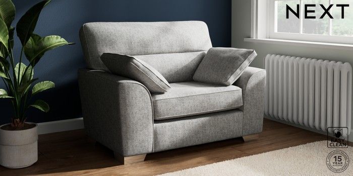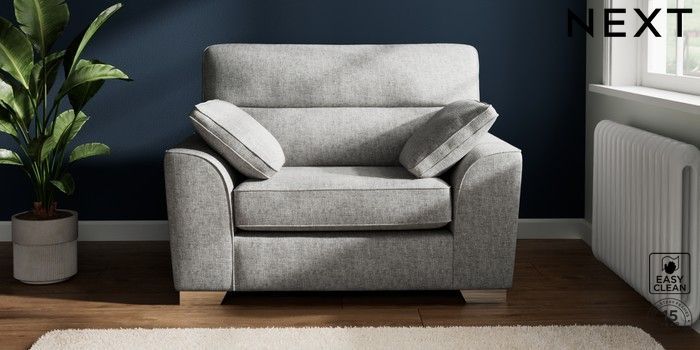 7.2.10 Buy Stamford Highback Snuggle Chunky Boucle Easy Clean Light Grey Large Square Angle - Chrome Metal from the Next UK online shop Click here to use our accessible website