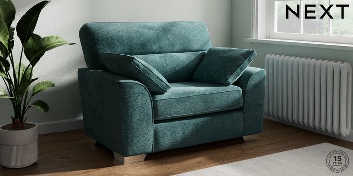 7.2.10 Buy Stamford Highback Snuggle Chunky Chenille Mid Teal Green Large Square Angle - Chrome Metal from the Next UK online shop Click here to use our accessible website
