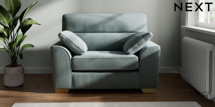 7.2.10 Buy Stamford Highback Snuggle Chunky Marl Mid Blue Large Square Angle - Brushed Brass from the Next UK online shop Click here to use our accessible website