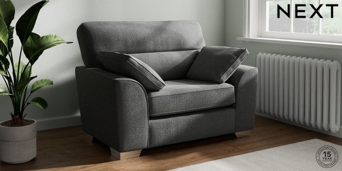 7.2.10 Buy Stamford Highback Snuggle Chunky Texture Dark Grey Large Square Angle - Chrome Metal from the Next UK online shop Click here to use our accessible website