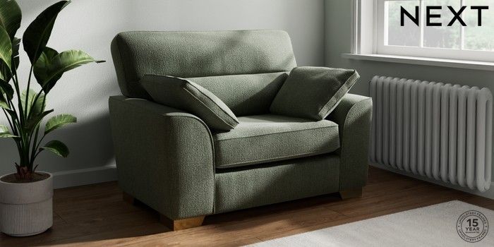 7.2.10 Buy Stamford Highback Snuggle Chunky Texture Mid Forest Green Large Square Angle - Brushed Brass from the Next UK online shop Click here to use our accessible website