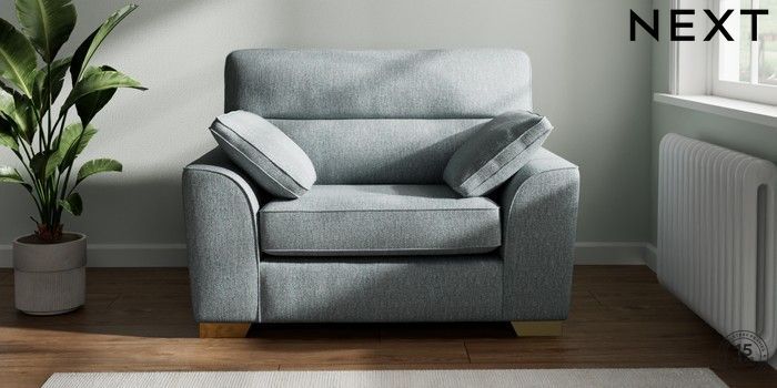 7.2.10 Buy Stamford Highback Snuggle Chunky Weave Mid Blue Large Square Angle - Brushed Brass from the Next UK online shop Click here to use our accessible website