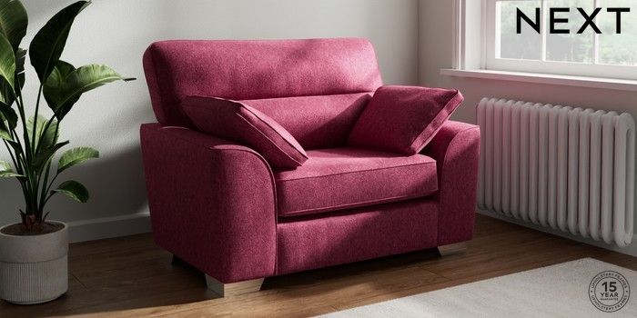 7.2.10 Buy Stamford Highback Snuggle Cotswold Chenille Dark Raspberry Pink Large Square Angle - Chrome Metal from the Next UK online shop Click here to use our accessible website