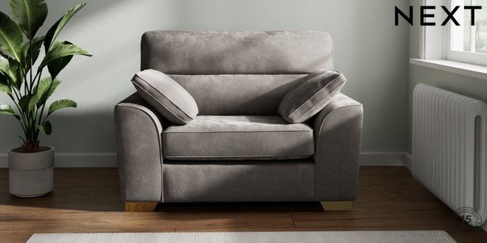 7.2.10 Buy Stamford Highback Snuggle Distressed Velour French Grey Large Square Angle - Brushed Brass from the Next UK online shop Click here to use our accessible website