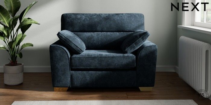 7.2.10 Buy Stamford Highback Snuggle Distressed Velour Midnight Blue Large Square Angle - Brushed Brass from the Next UK online shop Click here to use our accessible website