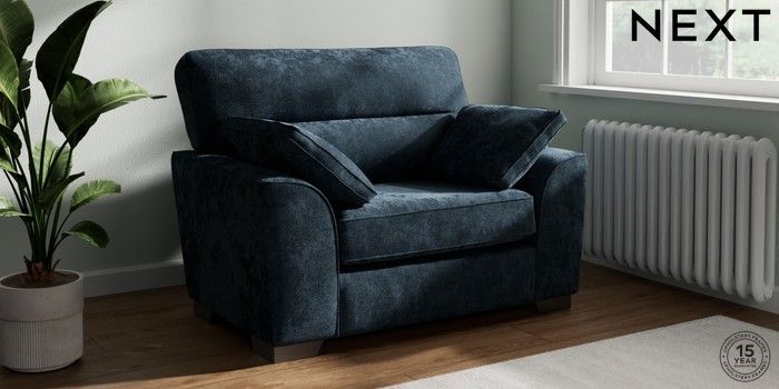 7.2.10 Buy Stamford Highback Snuggle Distressed Velour Midnight Blue Large Square Angle - Gunmetal from the Next UK online shop Click here to use our accessible website