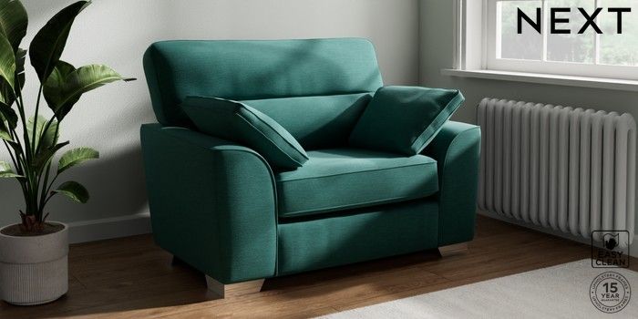 7.2.10 Buy Stamford Highback Snuggle Fine Chenille Easy Clean Dark Juniper Green Large Square Angle - Chrome Metal from the Next UK online shop Click here to use our accessible website