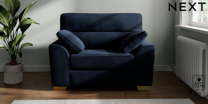 7.2.10 Buy Stamford Highback Snuggle Fine Chenille Easy Clean Dark Navy Blue Large Square Angle - Brushed Brass from the Next UK online shop Click here to use our accessible website
