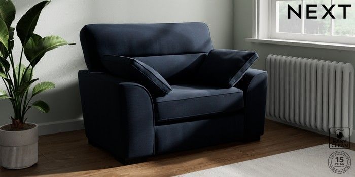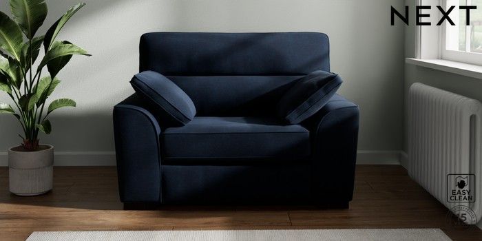 7.2.10 Buy Stamford Highback Snuggle Fine Chenille Easy Clean Dark Navy Blue Large Square Angle - Dark from the Next UK online shop Click here to use our accessible website