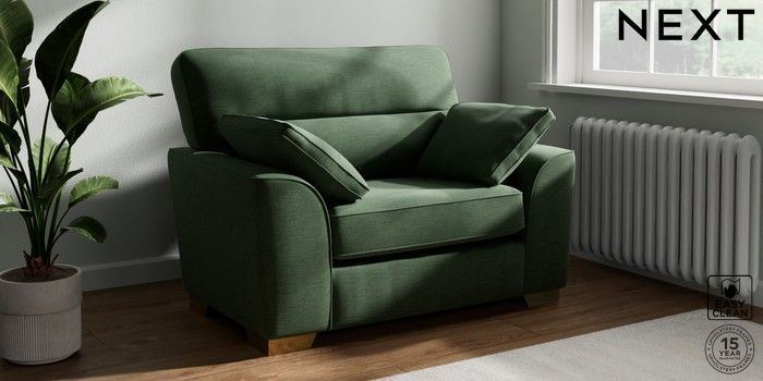 7.2.10 Buy Stamford Highback Snuggle Fine Chenille Easy Clean Mid Khaki Green Large Square Angle - Brushed Brass from the Next UK online shop Click here to use our accessible website
