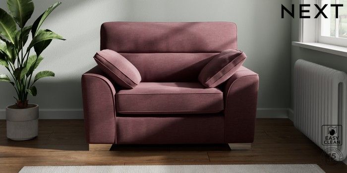 7.3.1 Buy Stamford Highback Snuggle Fine Chenille Easy Clean Mid Mulberry Purple Large Square Angle - Chrome Metal from the Next UK online shop Click here to use our accessible website