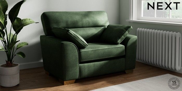 7.2.10 Buy Stamford Highback Snuggle Luxe Chenille Dark Green Large Square Angle - Brushed Brass from the Next UK online shop Click here to use our accessible website