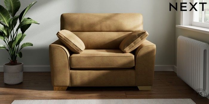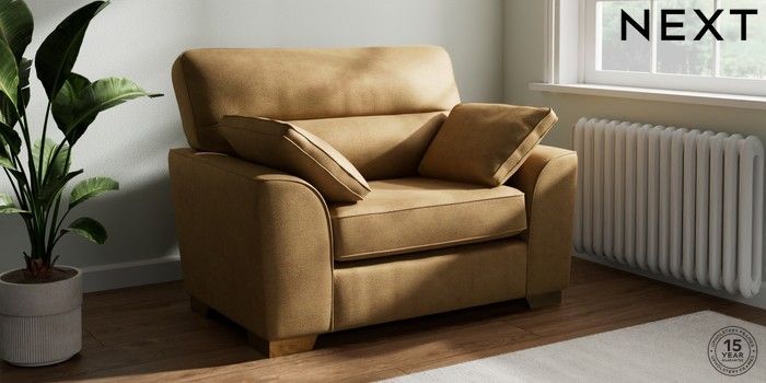 7.2.6 Buy Stamford Highback Snuggle Luxe Chenille Honey Yellow Large Square Angle - Brushed Brass from the Next UK online shop Click here to use our accessible website