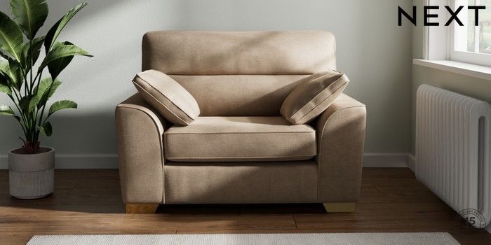 7.2.10 Buy Stamford Highback Snuggle Luxe Chenille Mid Camel Beige Large Square Angle - Brushed Brass from the Next UK online shop Click here to use our accessible website