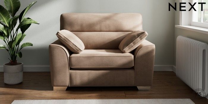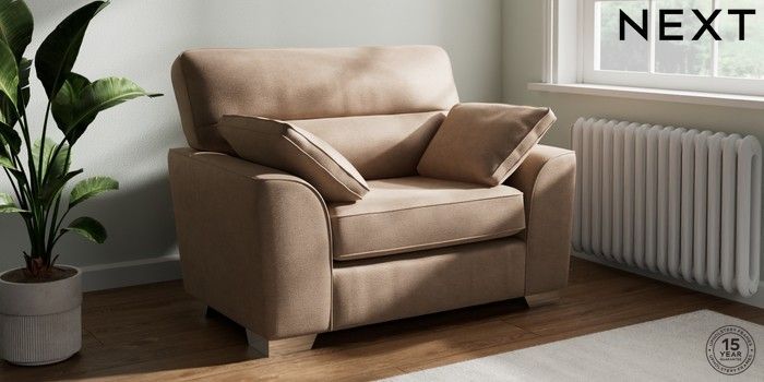 7.2.10 Buy Stamford Highback Snuggle Luxe Chenille Mid Natural Large Square Angle - Chrome Metal from the Next UK online shop Click here to use our accessible website