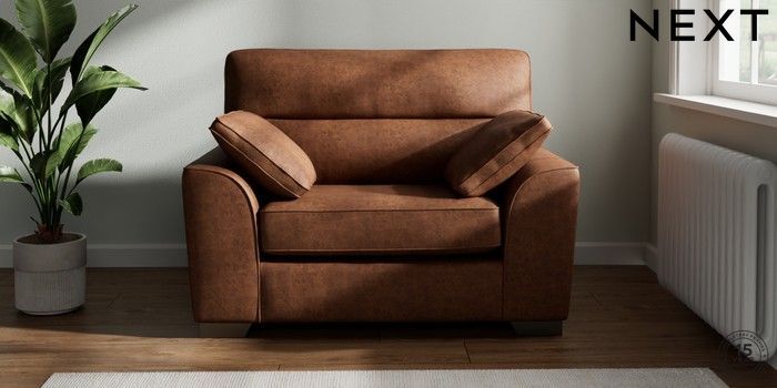 7.3.1 Buy Stamford Highback Snuggle Monza Faux Leather Easy Clean Chestnut Brown Large Square Angle - Gunmetal from the Next UK online shop Click here to use our accessible website