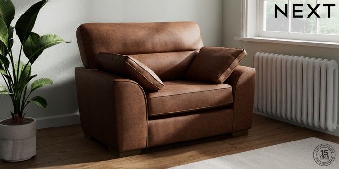 7.3.1 Buy Stamford Highback Snuggle Monza Faux Leather Easy Clean Chestnut Brown Large Square Angle - Mid from the Next UK online shop Click here to use our accessible website