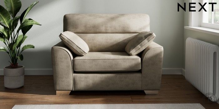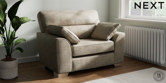 7.3.1 Buy Stamford Highback Snuggle Monza Faux Leather Easy Clean Mink Brown Large Square Angle - Chrome Metal from the Next UK online shop Click here to use our accessible website