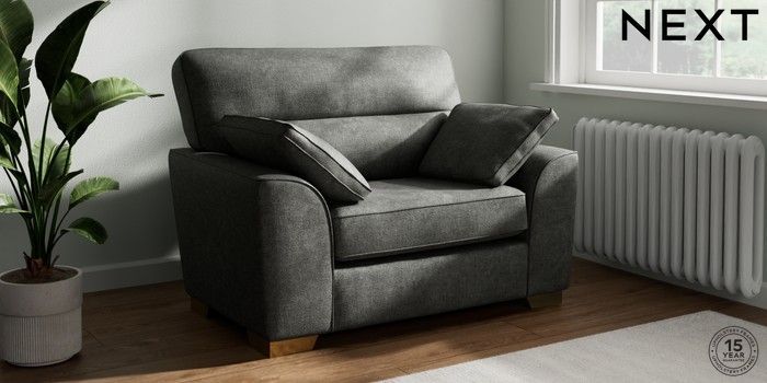 7.2.10 Buy Stamford Highback Snuggle Plush Chenille Dark Grey Large Square Angle - Brushed Brass from the Next UK online shop Click here to use our accessible website
